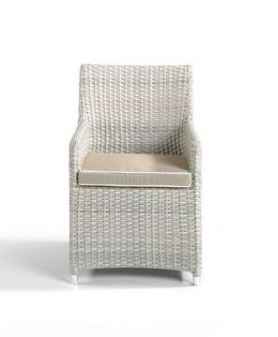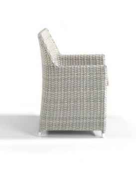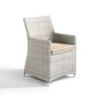 SILLON COMEDOR,con estructura de aluminio y uniones de aluminio reforzado para obtener un mueble resistente y de alta durabilidad, el tejido es de rattan sintético trenzado de 10mm en color toast, esta fibra de alta calidad no procede de resinas recicladas, por lo que son indeformables y muy resistentes al sol y a la humedad así pues, este mueble puede permanecer en el exterior sin necesidad de protección o mantenimiento alguno, aunque para alargar la vida útil de su mueble de exterior aconsejamos tapar con una funda opaca e impermeable si no se van a utilizar en periodos prolongados de tiempo. Protección en las patas con casquillos de aluminio y tacos de plástico. Tapicería Olefin 100% color único, con tratamiento repelente a líquidos y manchas, anti-moho, antibacteriano, filtro rayos ultravioleta, con solidez del color a la luz 7/8, a la fricción y al agua clorada de las piscinas. El espesor de la tapicería es de 5 cm siendo esta completamente desenfundable para facilitar la limpieza. Tejido OECO-TEX, respetuoso con el medio ambiente. Combinado con el resto de piezas de esta misma colección, conseguirás transformar tu terraza en una elegante zona de confort y relax.