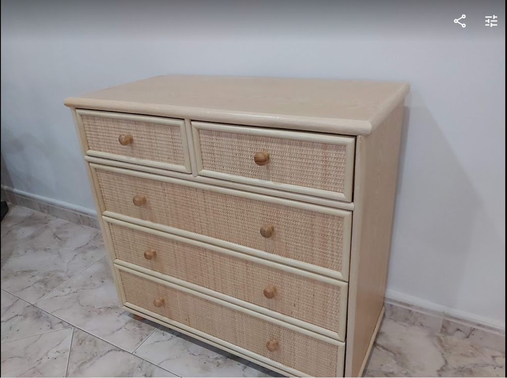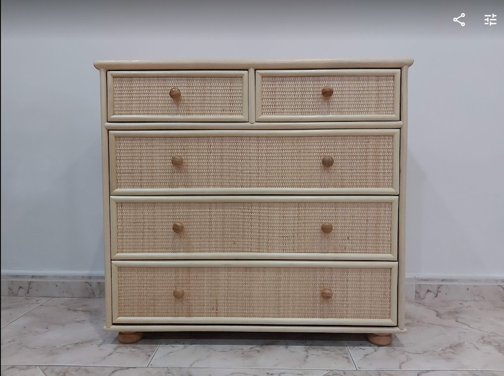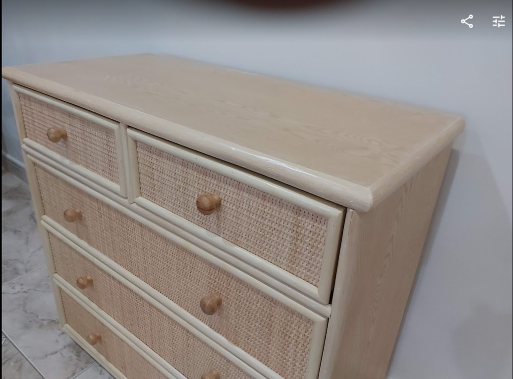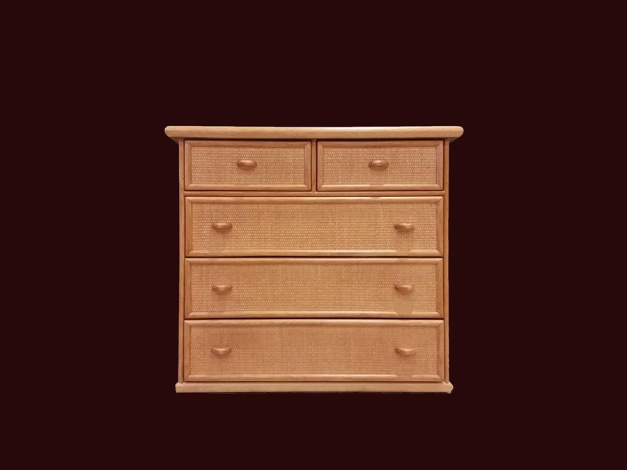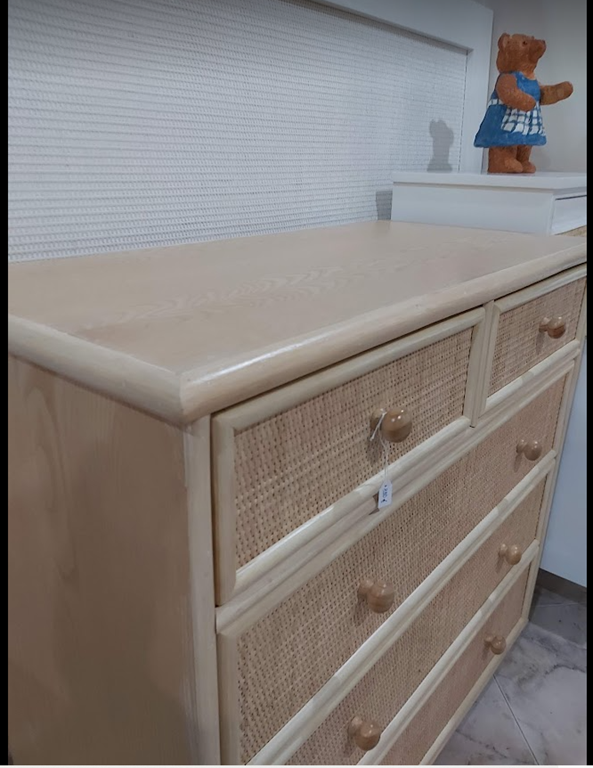 COMODA GRANDE DE MADERA CON FRONTAL DE RATTAN.