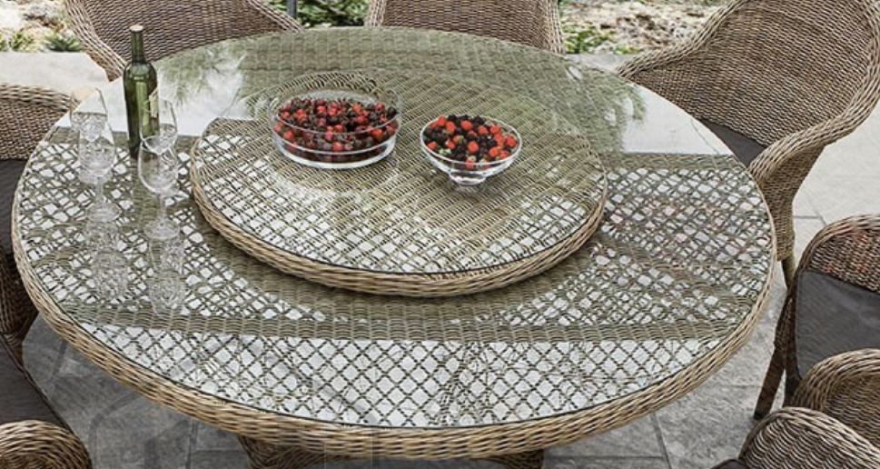 Suplemento giratorio de aluminio de 1,5mm de espesor y uniones de aluminio reforzado para obtener un mueble resistente y de alta durabilidad, el tejido es de rattan sintético 5mm de diámetro en color grey kubu, esta fibra de alta calidad no procede de resinas recicladas, por lo que son indeformables y muy resistentes al sol y a la humedad así pues, este mueble puede permanecer en el exterior sin necesidad de protección o mantenimiento alguno, aunque para alargar la vida útil de su mueble de exterior aconsejamos tapar con una funda opaca e impermeable si no se van a utilizar en periodos prolongados de tiempo. Incluye cristal templado de 5mm de grosor con ventosas para una segura sujeción del cristal. Dispone de un mecanismo giratorio le será muy útil para tener a mano todos los preparativos dispuestos en su mesa.