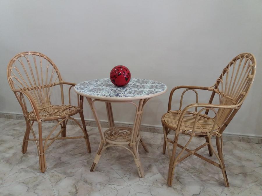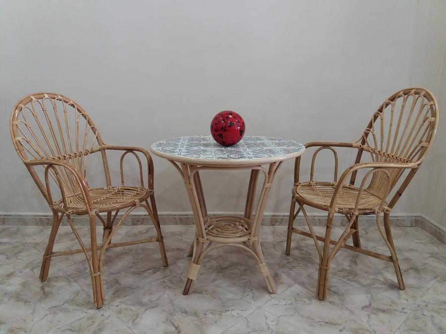 CONJUNTO DE DOS SILLONES PALMITO + MESA CERAMICA DE 75 CM.