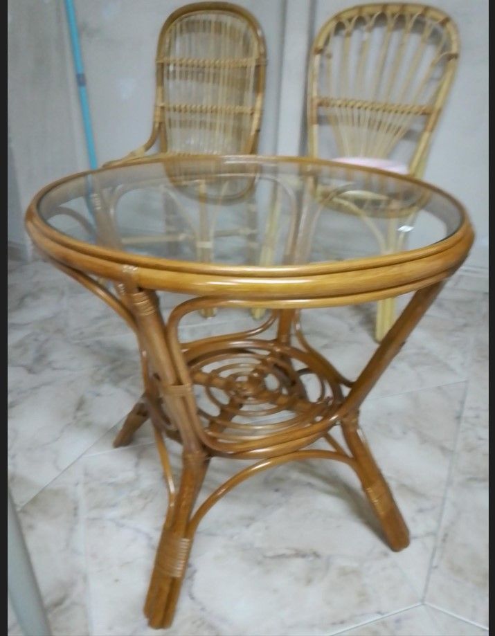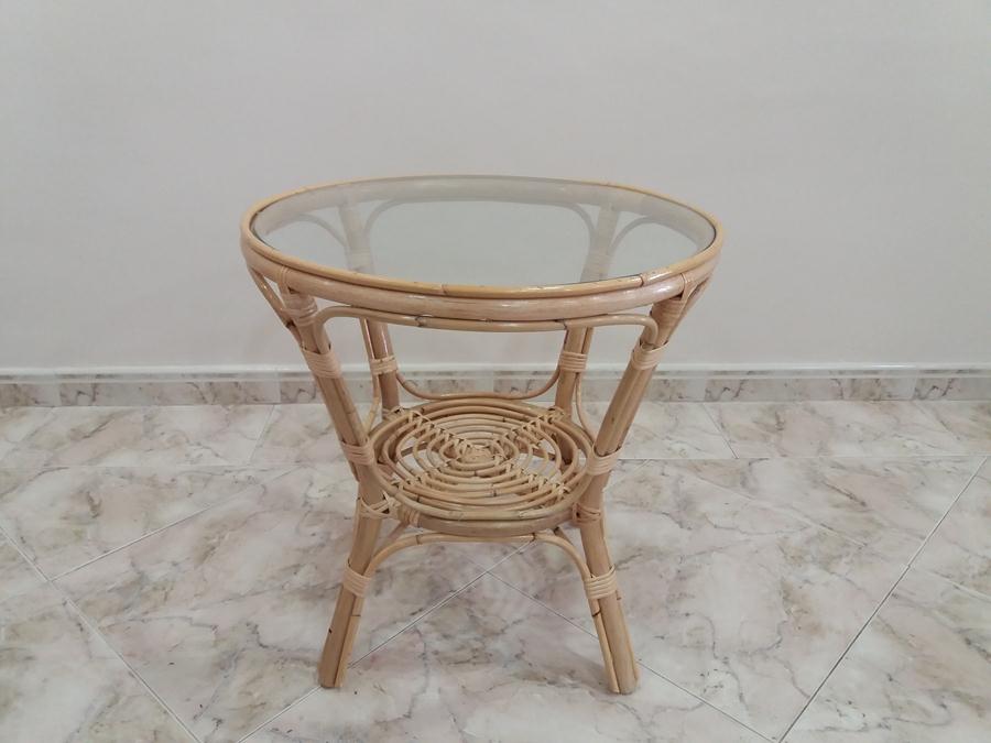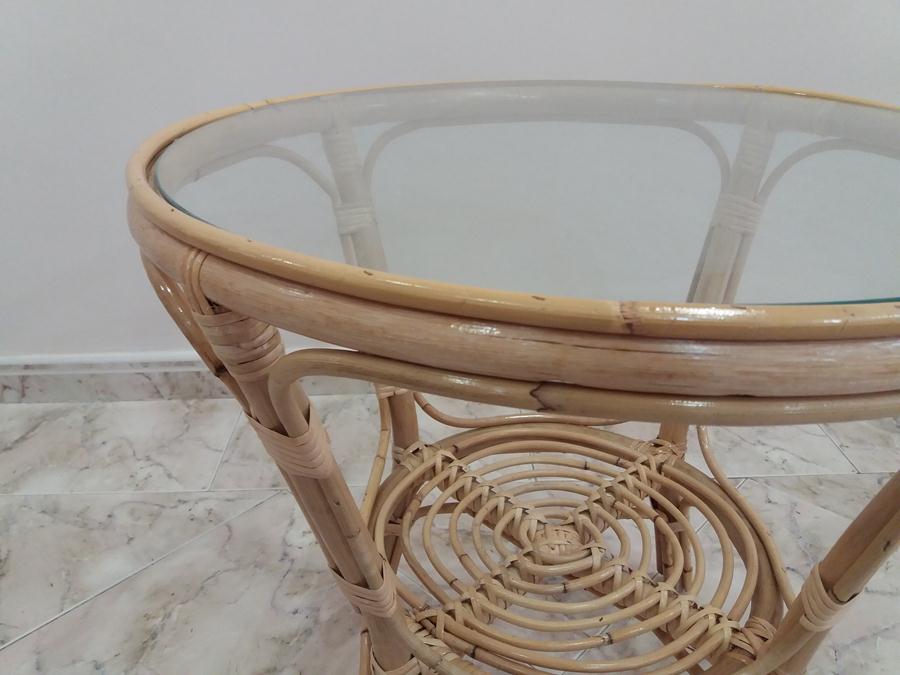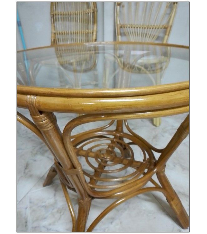 MESA DE CENTRO DE CAÑA BAMBU, CON TAPA DE CRISTAL.