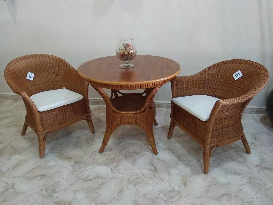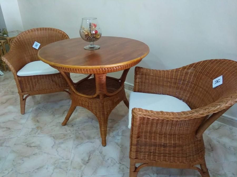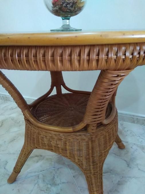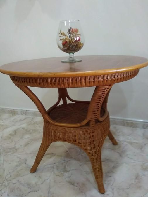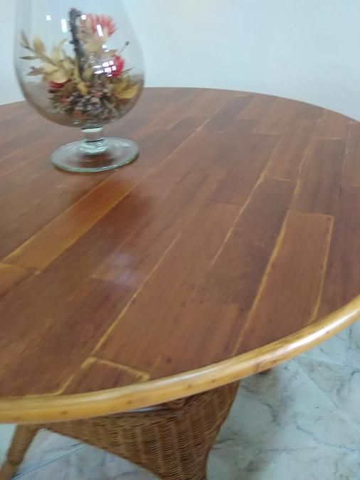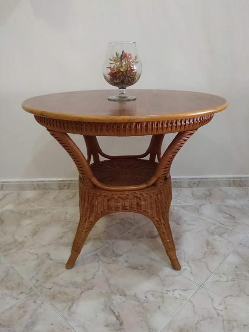 MESA DE RATTAN CON TAPA DE MADERA 90 CM.