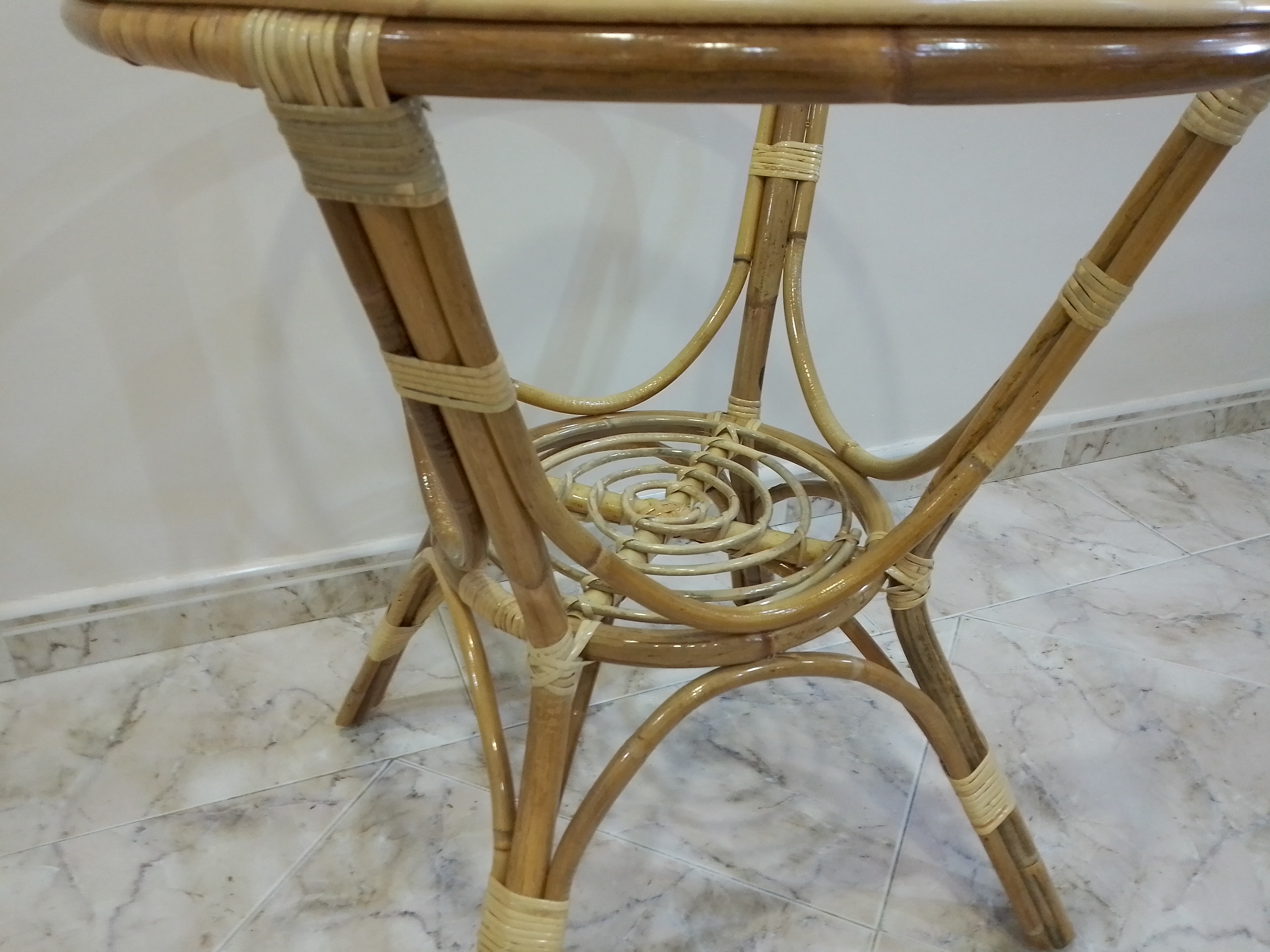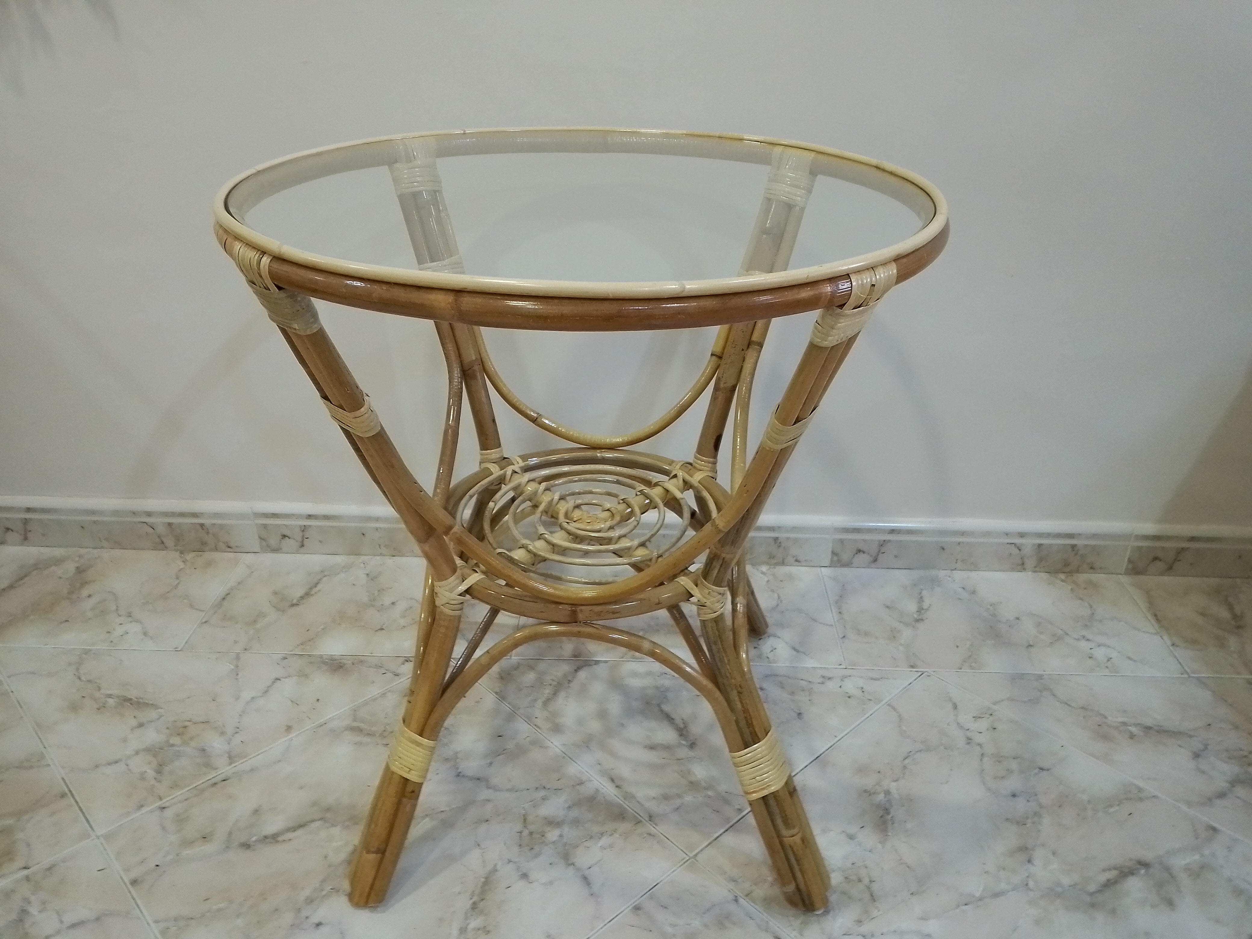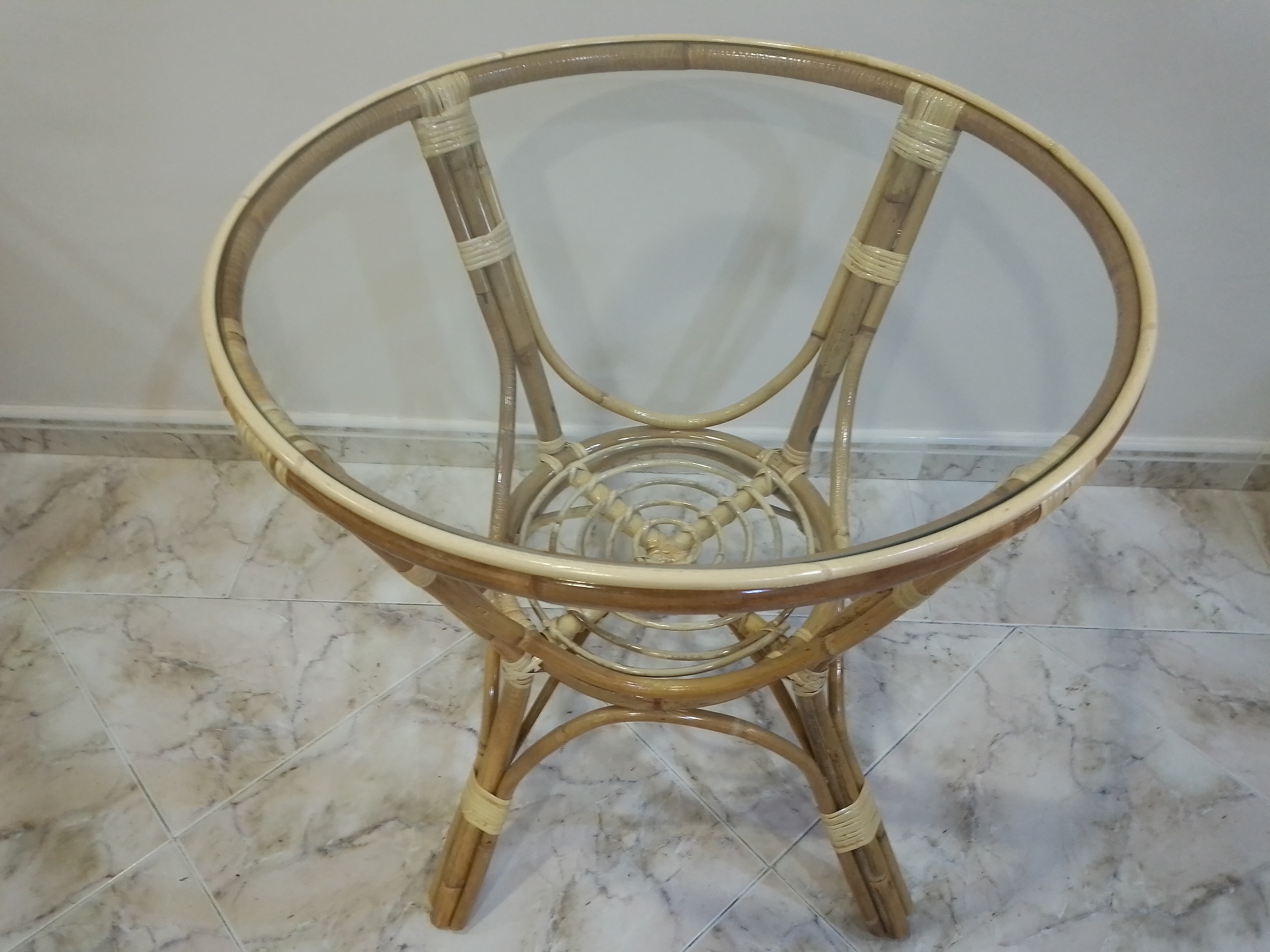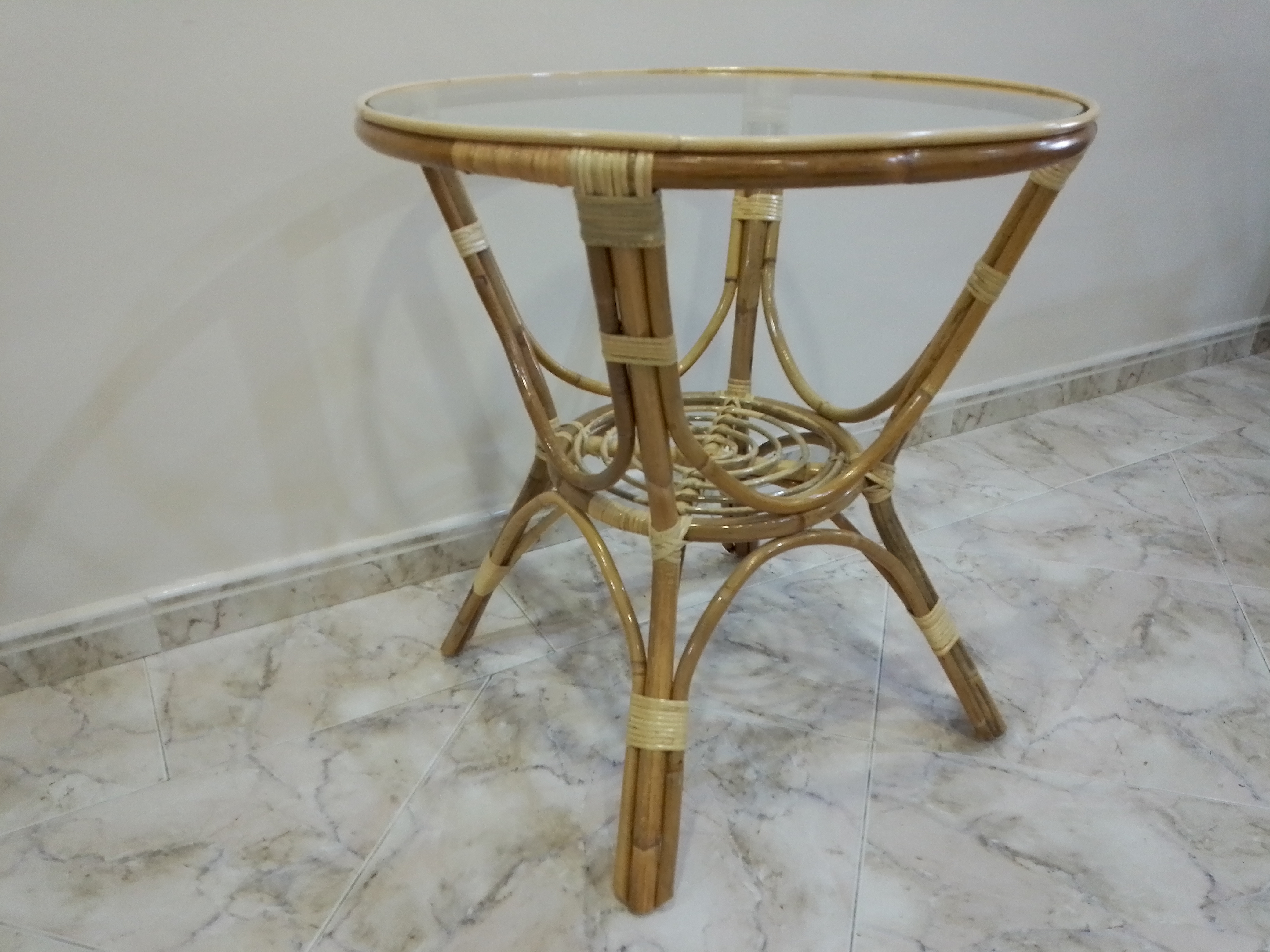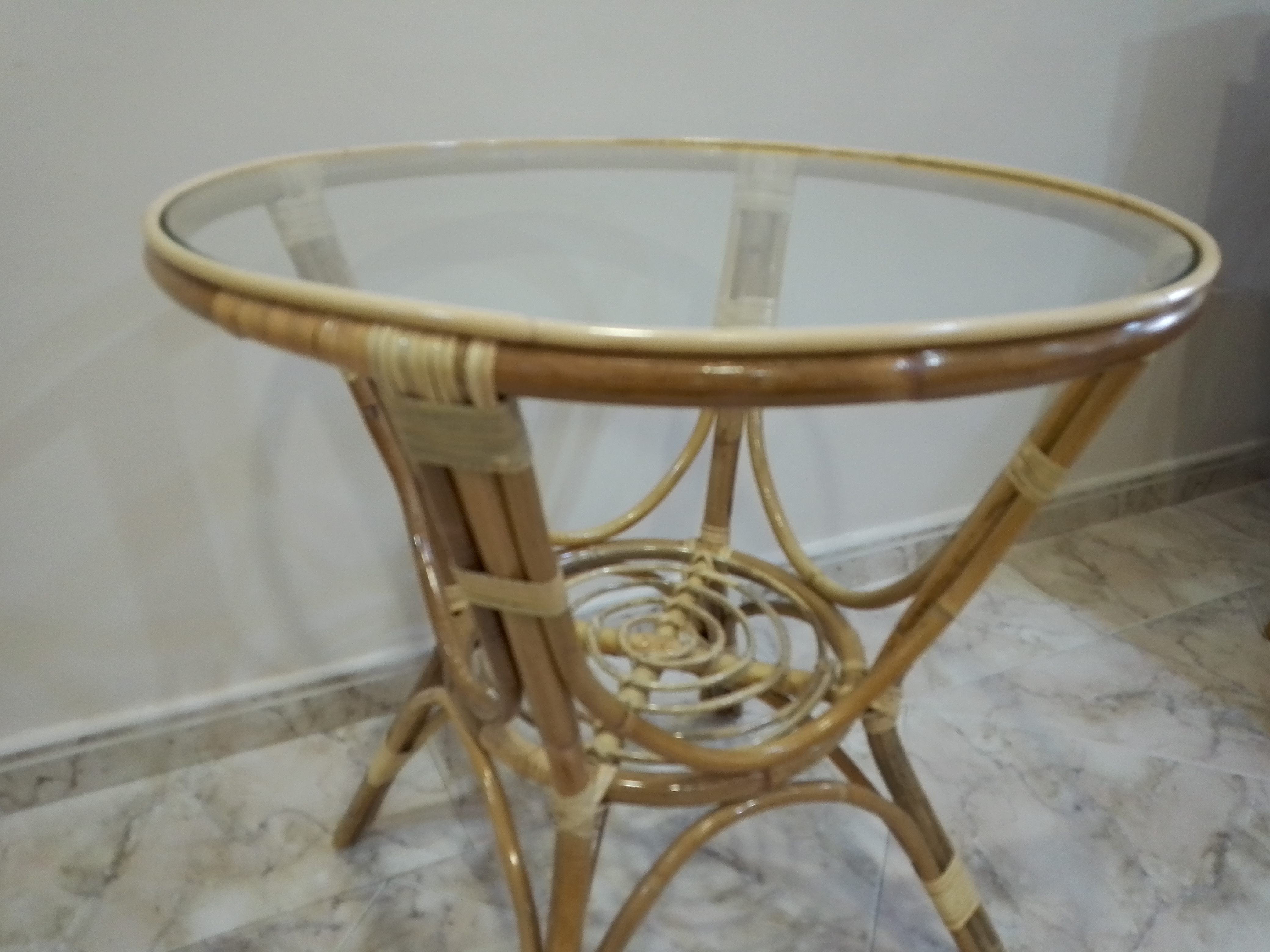 MESA DE CAÑA BAMBU, CON TAPA DE CRISTAL.