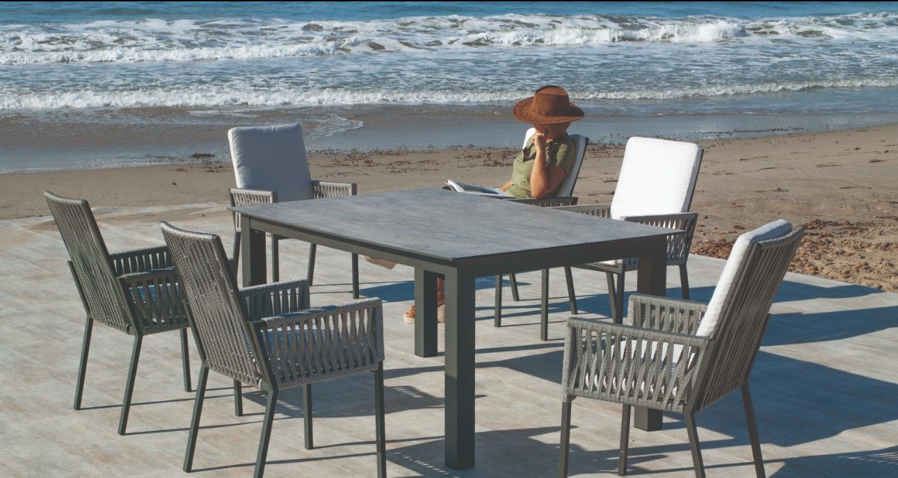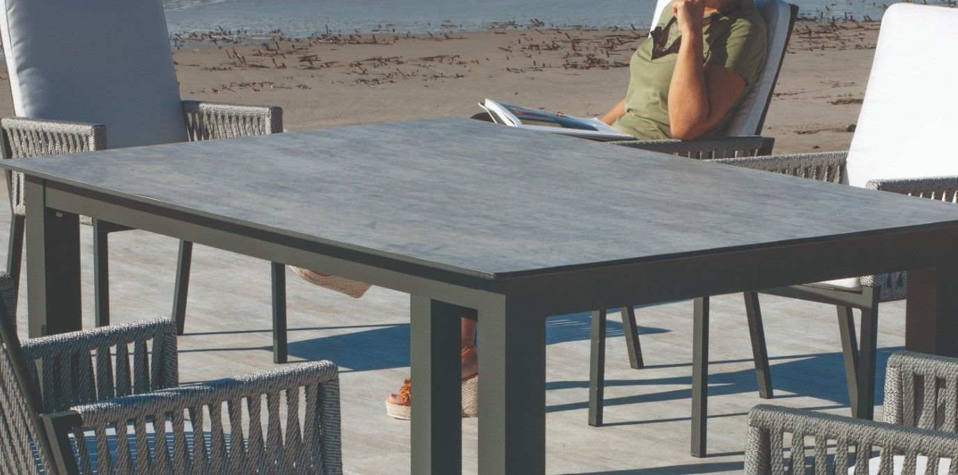 MESA ESTRUCTURA ALUMINIO ALTA CALIDAD ANTRACITA, TAPA HPL COLOR ARGENTA.