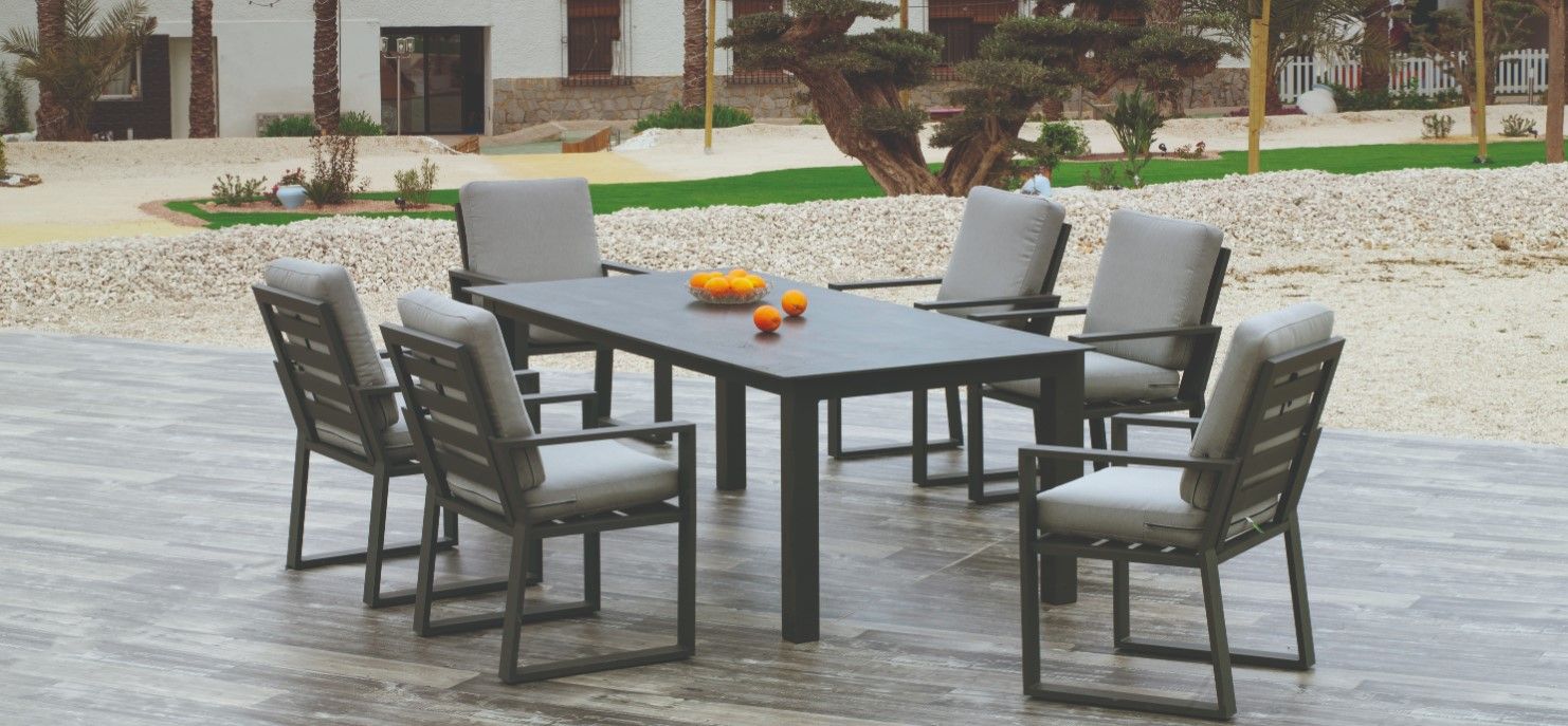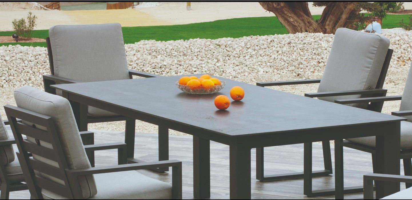 MESA CON ESTRUCTURA DE ALUMNIO ALTA CALIDAD ARGENTA. TAPA HPL COLOR ARGENTA.