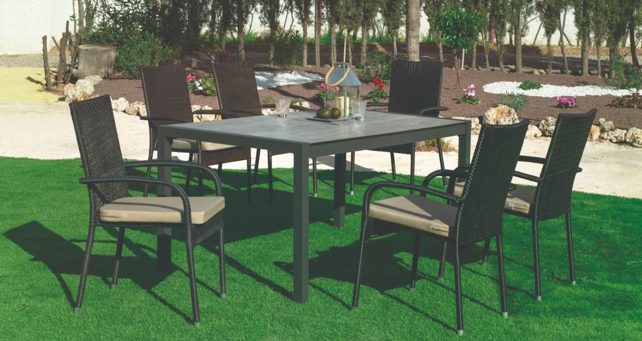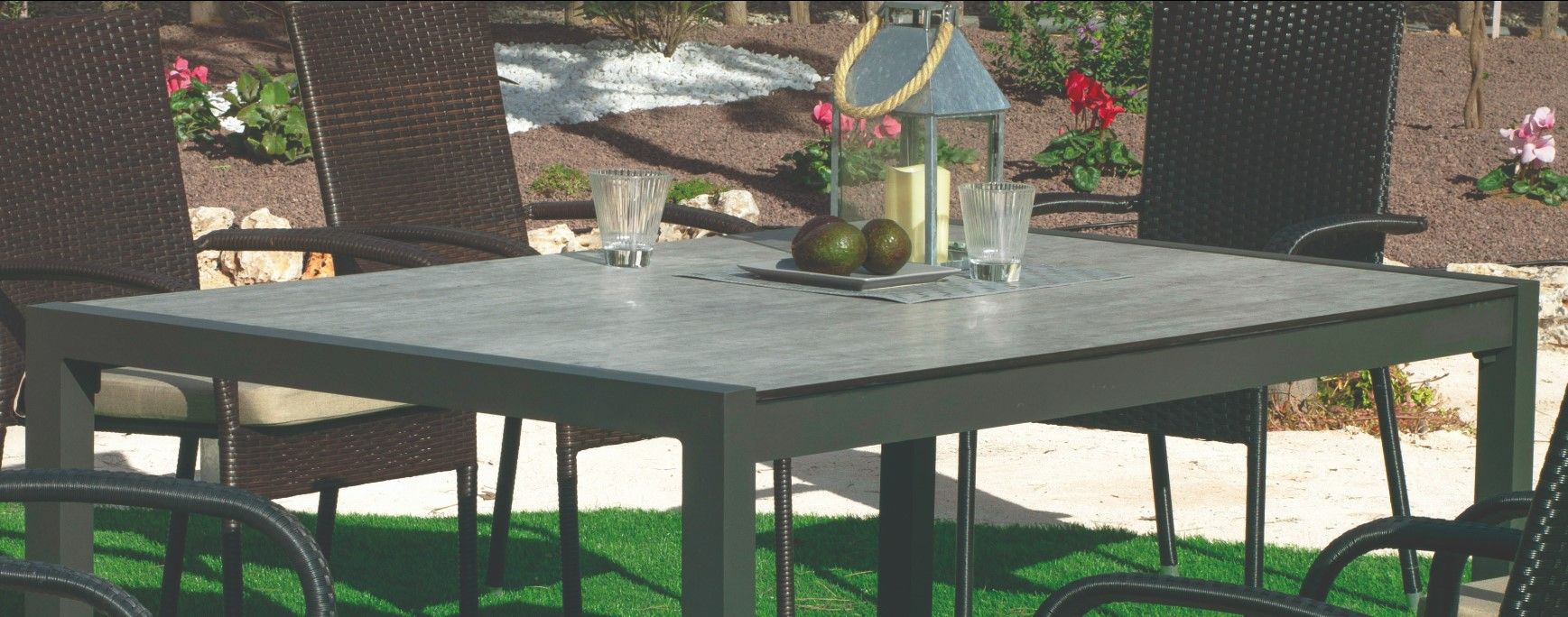 MESA COMEDOR DE ALUMINIO TOP ARGENTA.
