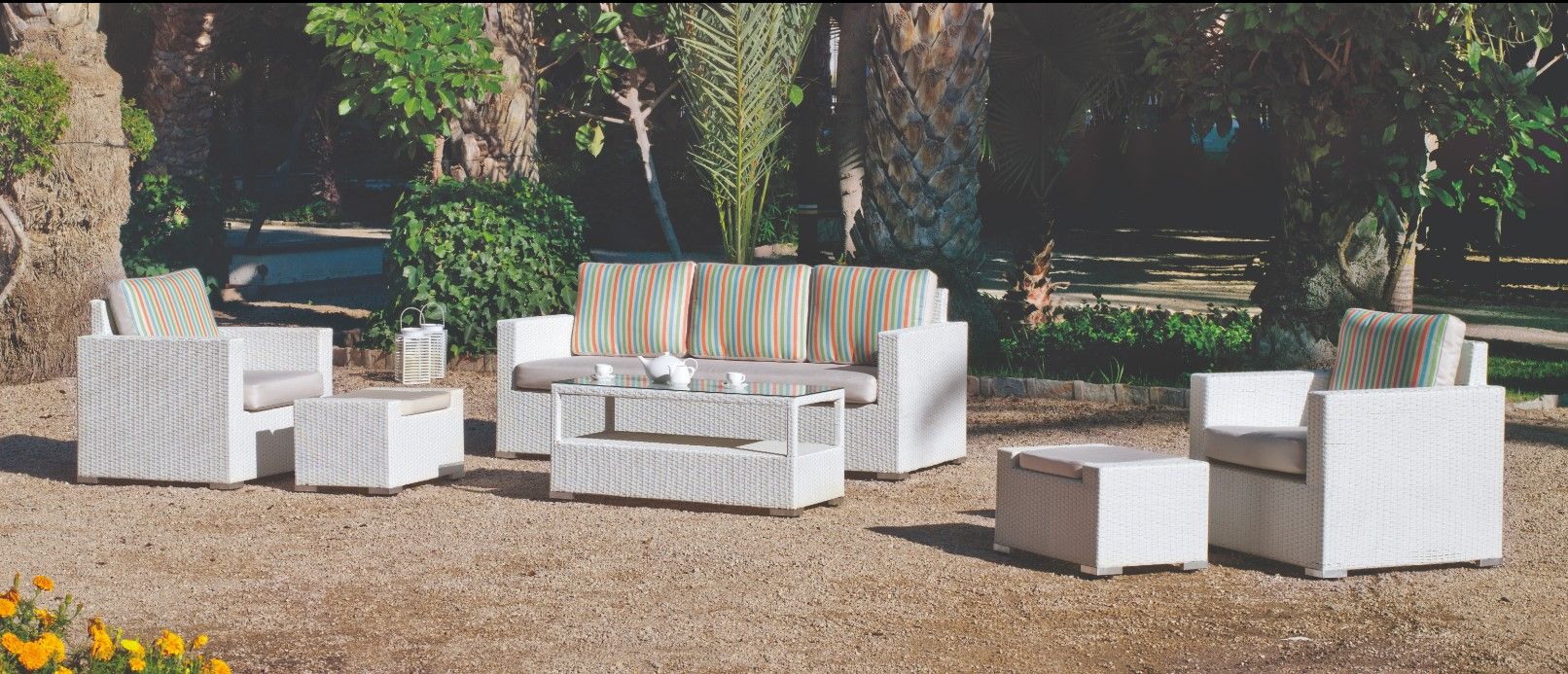 MUEBLES FABRICADOS EN RATTAN SINTETICO Y ESTRUCTURA DE ACERO.