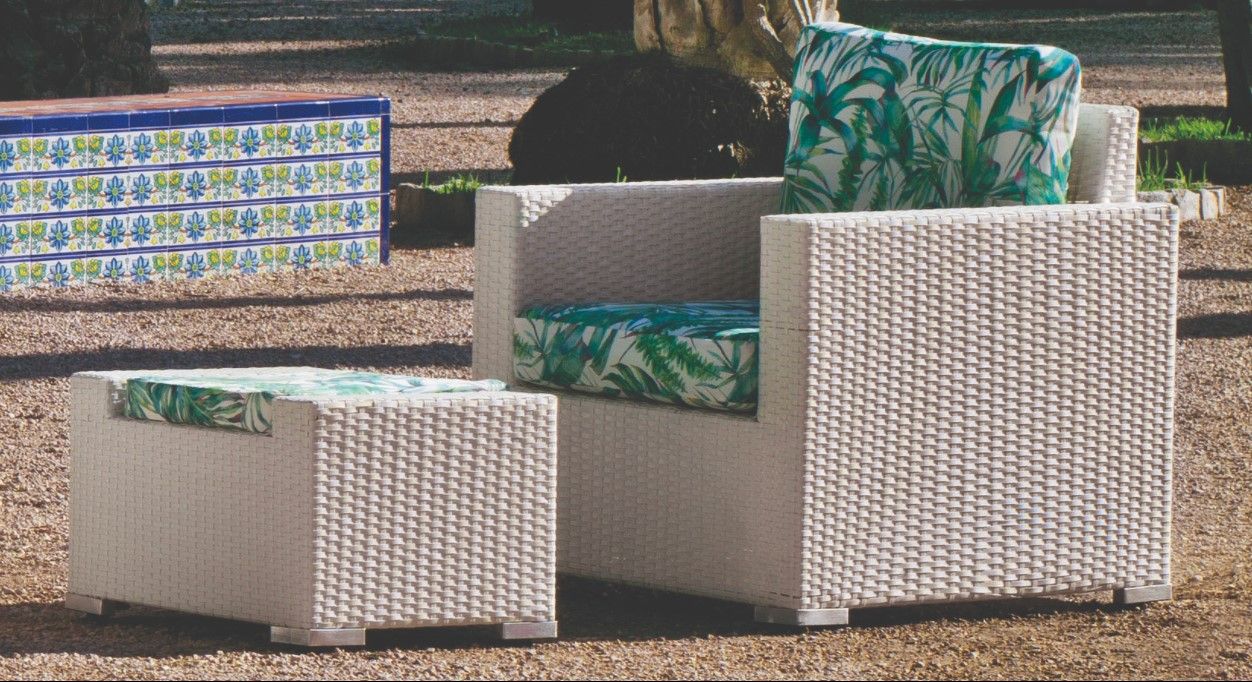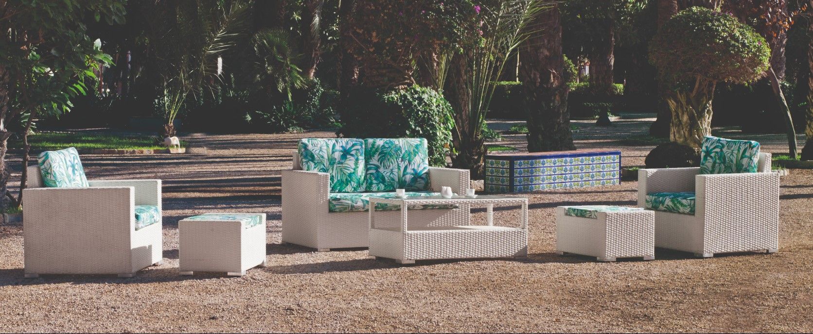 MUEBLES FABRICADOS EN RATTAN SINTETICO Y ESTRUCTURA DE ACERO.