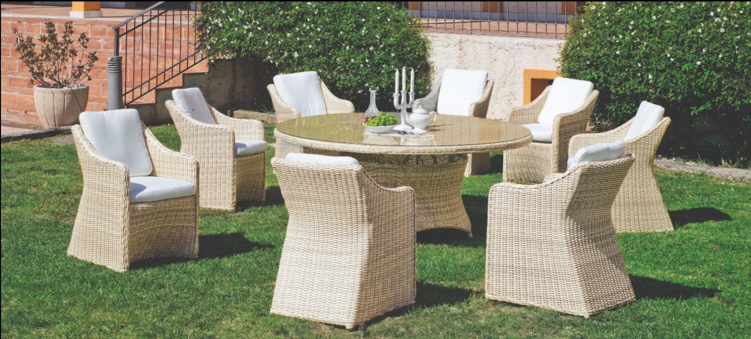 1 MESA 180 DIM. + 8 SILLONES + COJINES.