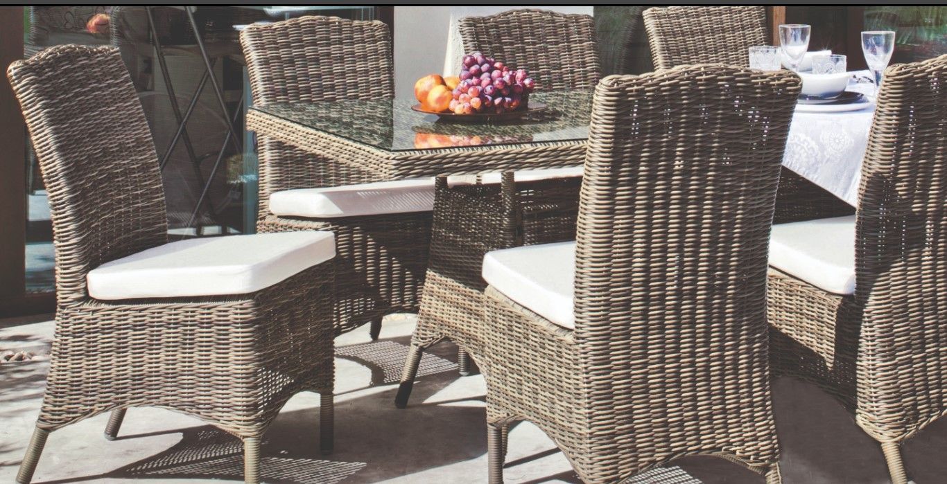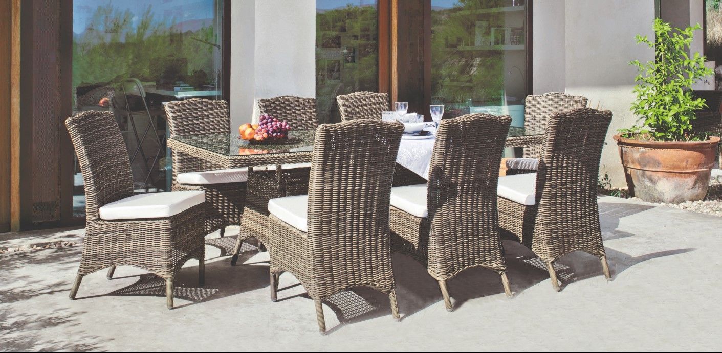 CONJUNTO COMPUESTO POR: 1 MESA 220 + 8 SILLAS + 8 COJINES