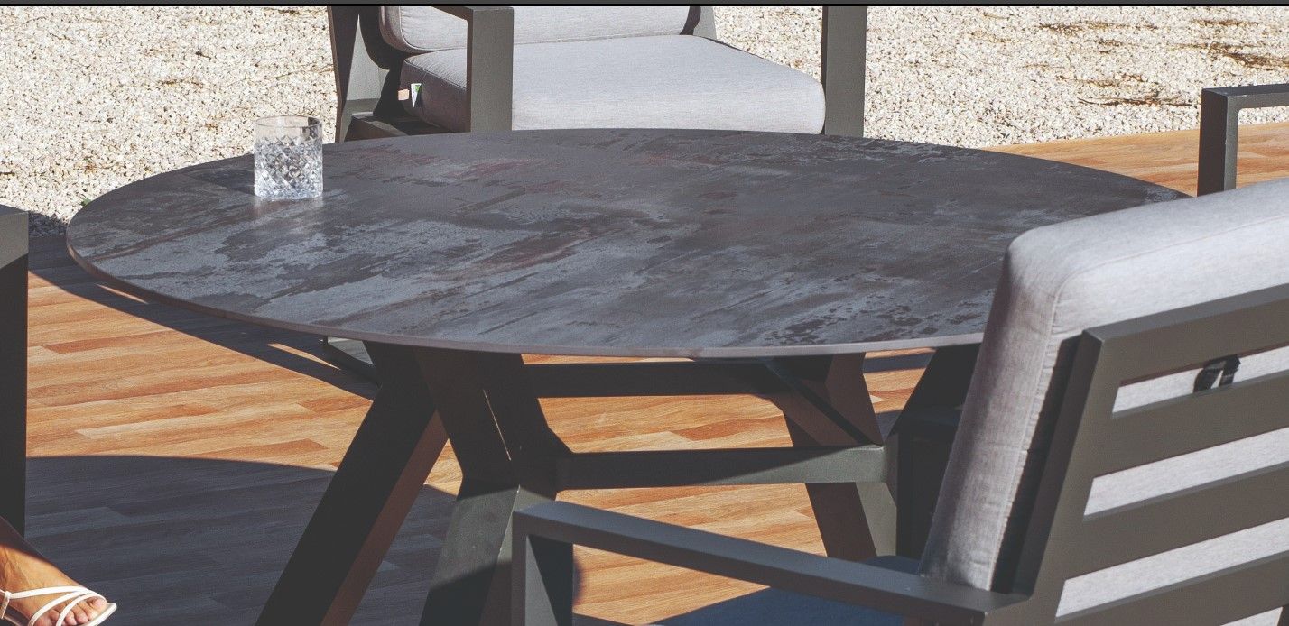 MESA CON ESTRUTURA DE ALUMINIO ANTRACITA Y TAPA DE TABLERO SINTETIZADO TRILIUM.