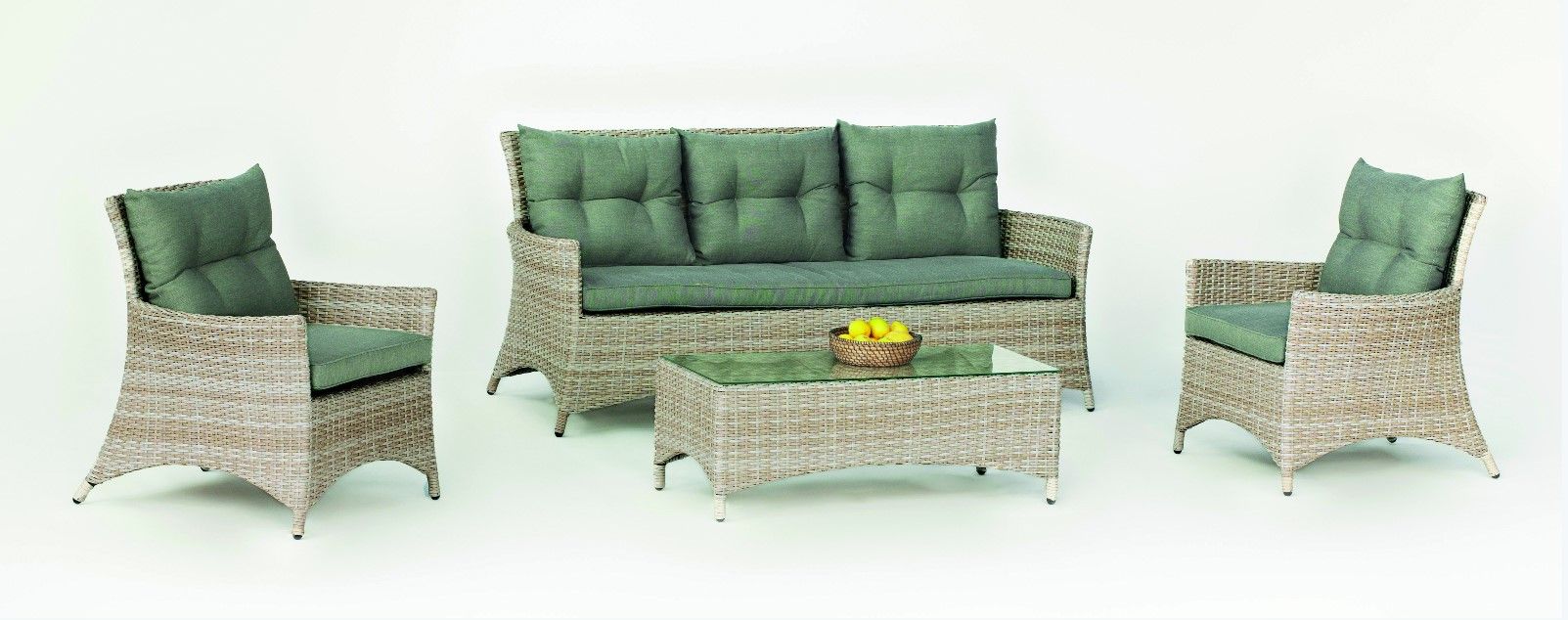 CONJUNTO COMPUESTO POR: 2 SILLONES + 1 SOFA 3 PLAZAS + 1 MESA CENTRO + COJINES DRALON