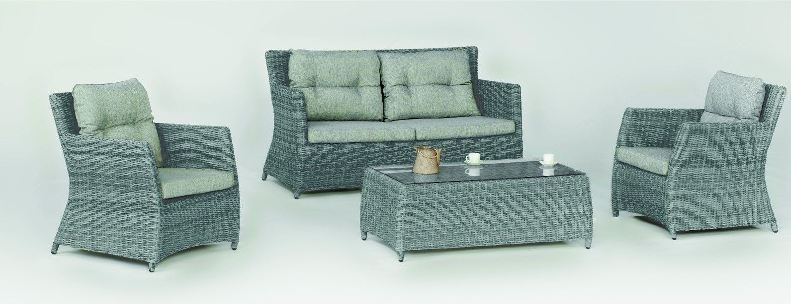 MUEBLES FABRICADOS EN FIBRA SINTETICA Y ESTRUCTURA DE ACERO. COLOR GRIS.