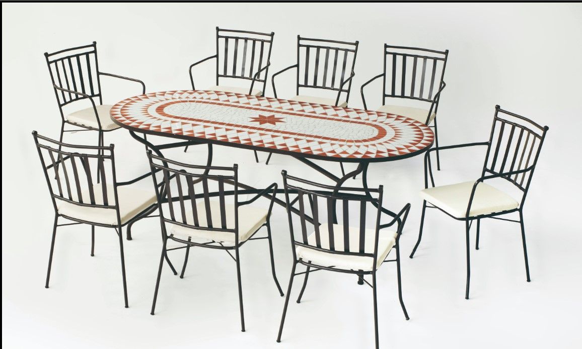CONJUNTO DE MESA DE 200 CM. Y 8 SILLONES CON COJIN.