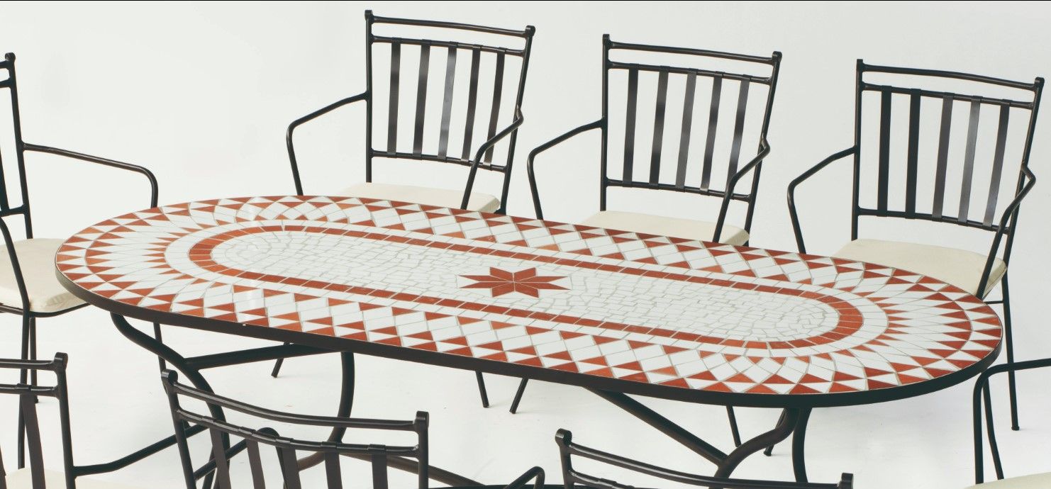 MESA MOSAICO CON ESTRUCTURA DE ACERO REFORZADO, COLOR BRONCE.