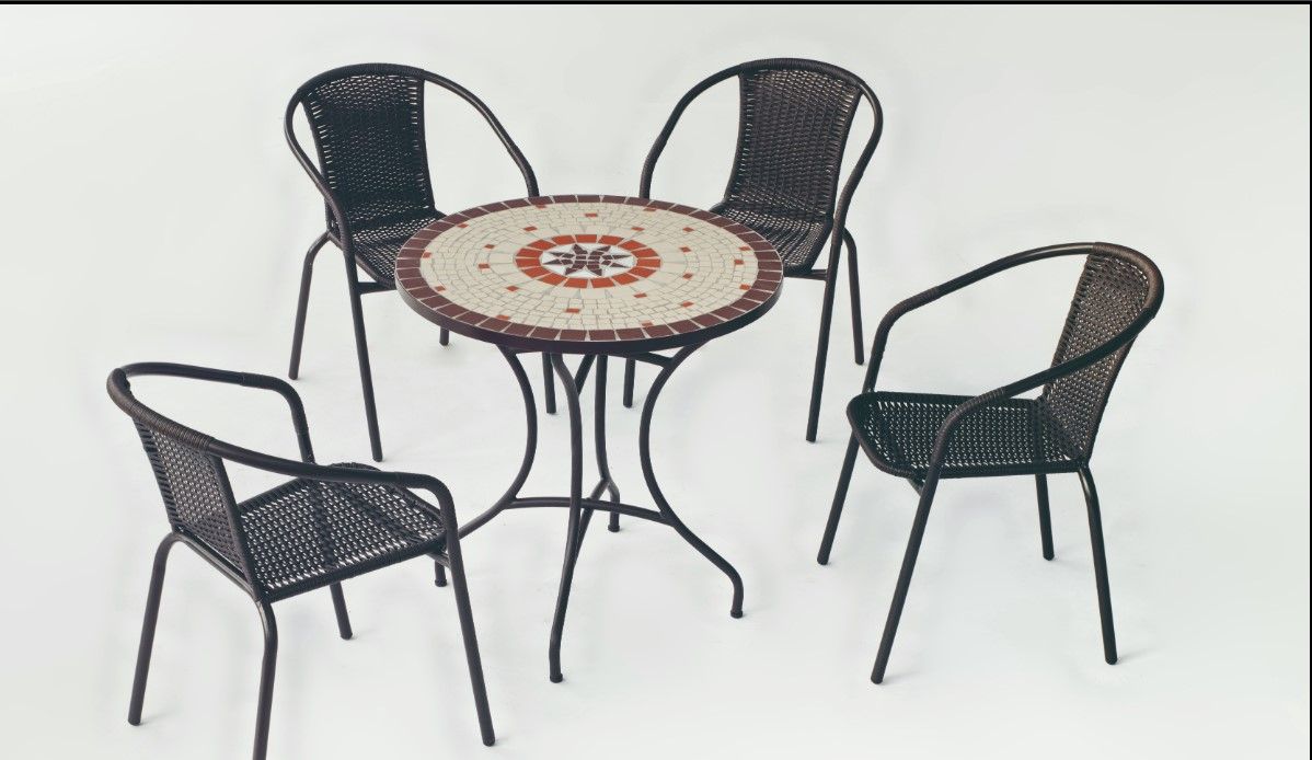 CONJUNTO DE MESA 75 CM. DIM. Y 4 SILLONES CON TEJIDO SINTETICO.