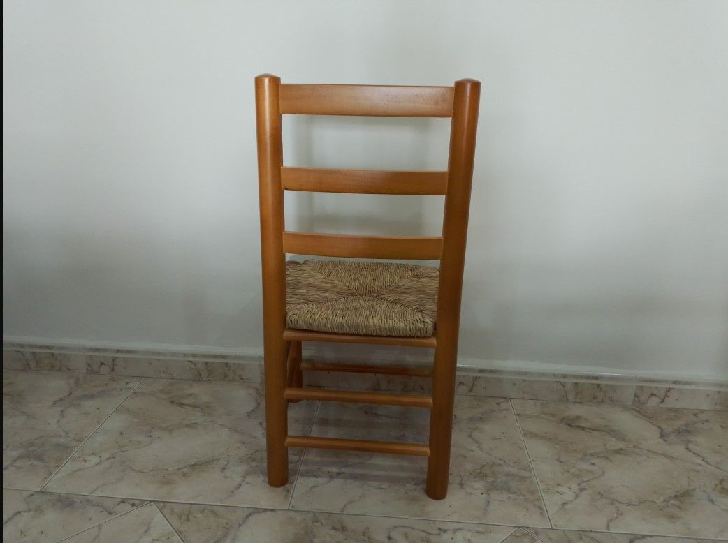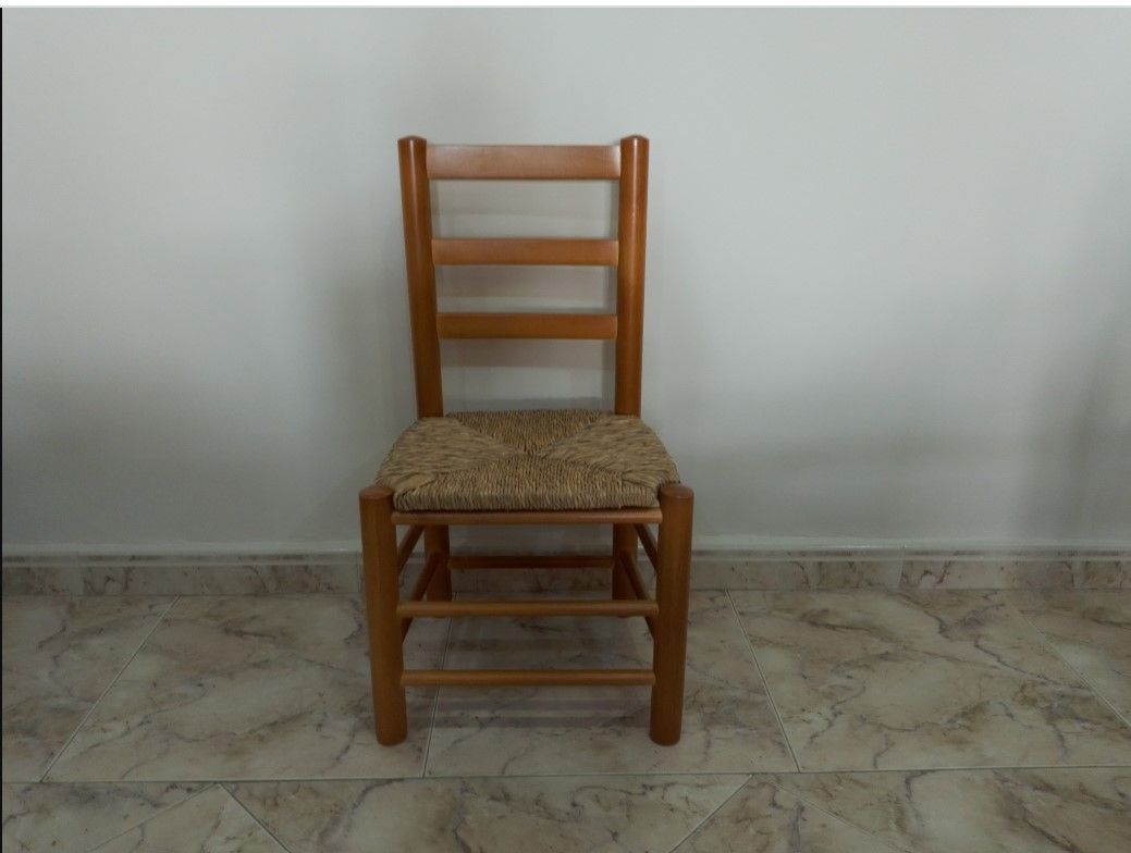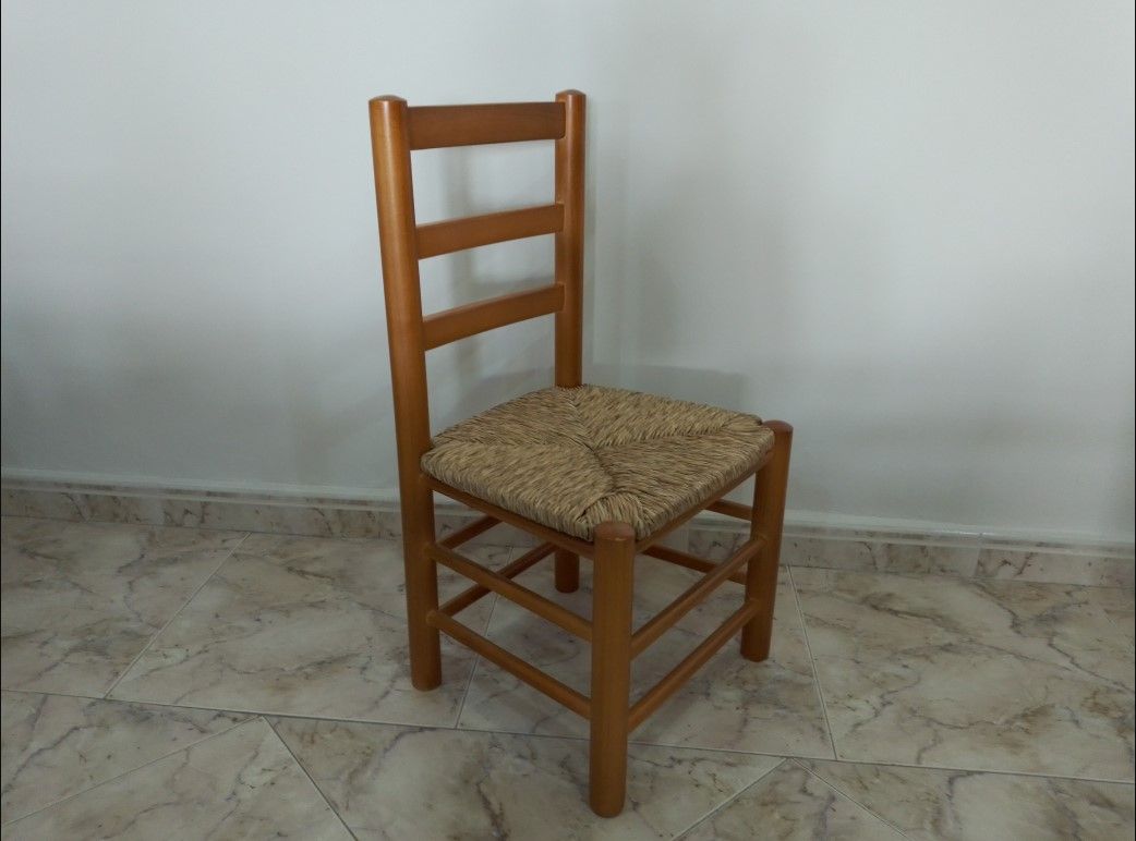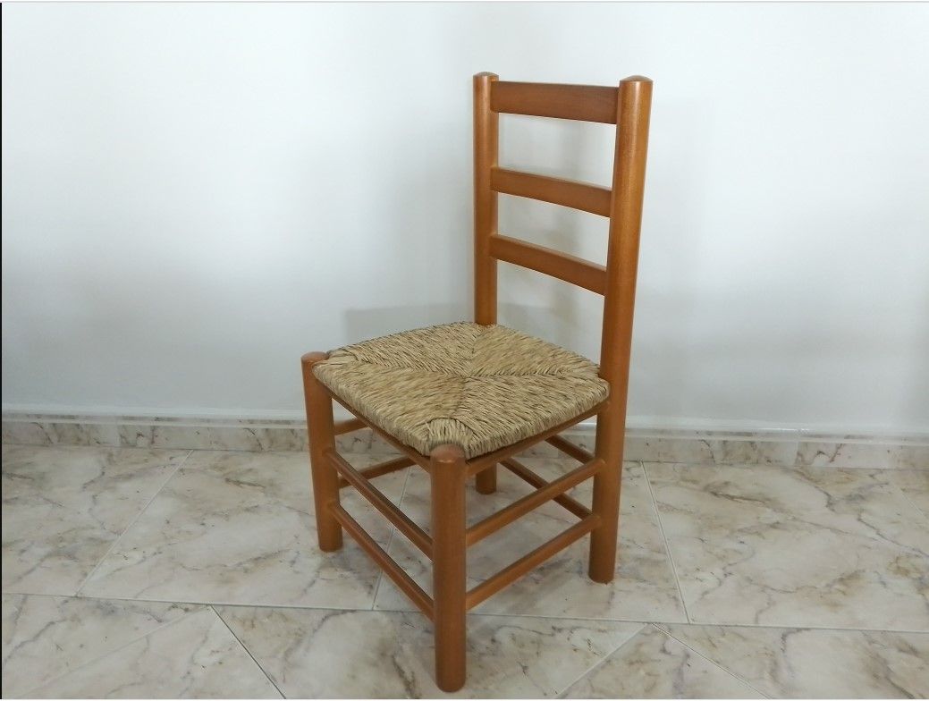 SILLA BAJA DE MADERA CON ASIENTO DE ENEA.