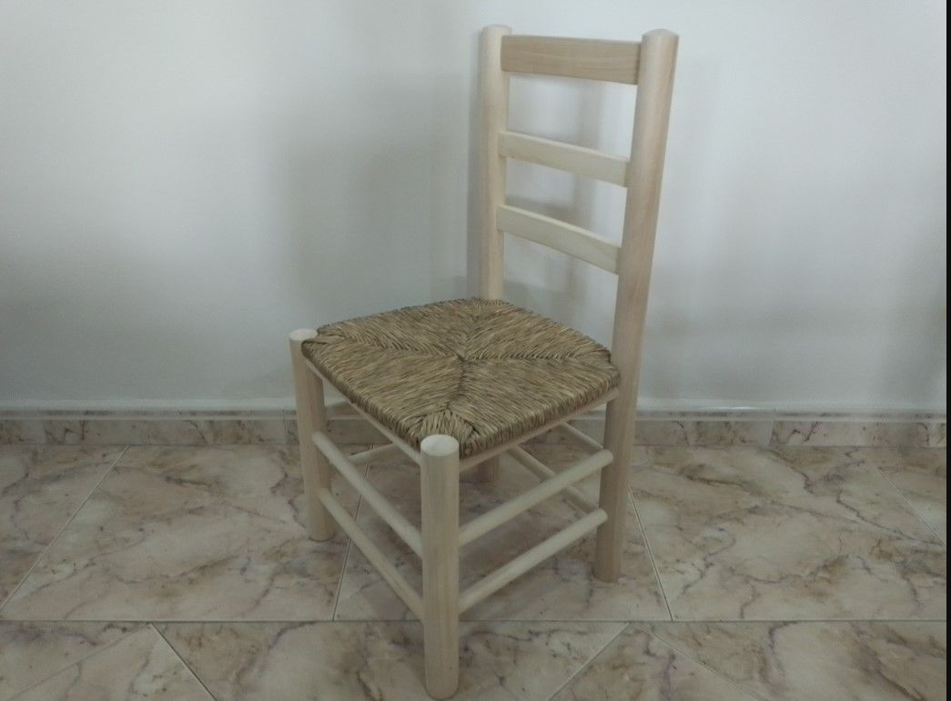 SILLA BAJA DE MADERA CON ASIENTO DE ENEA.