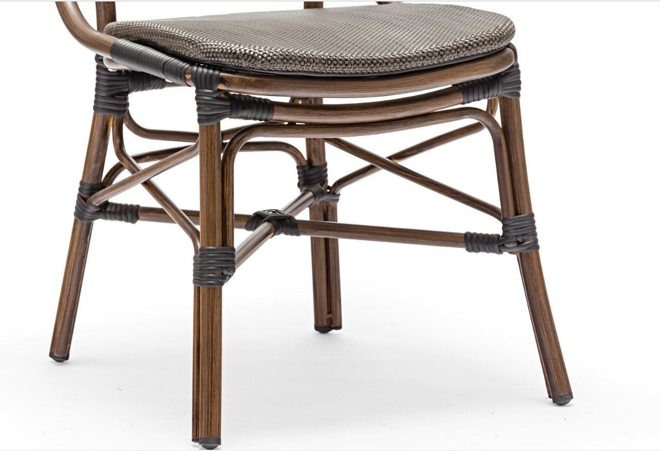 La silla outdoor RIGA es una elegante silla fabricada con materiales y acabados de primera calidad. Su estructura es de aluminio con tejido textilene y detalles en rattan sintético color coffee. Su extraordinario diseño aportará singularidad a tu terraza, patio o zona outdoor.