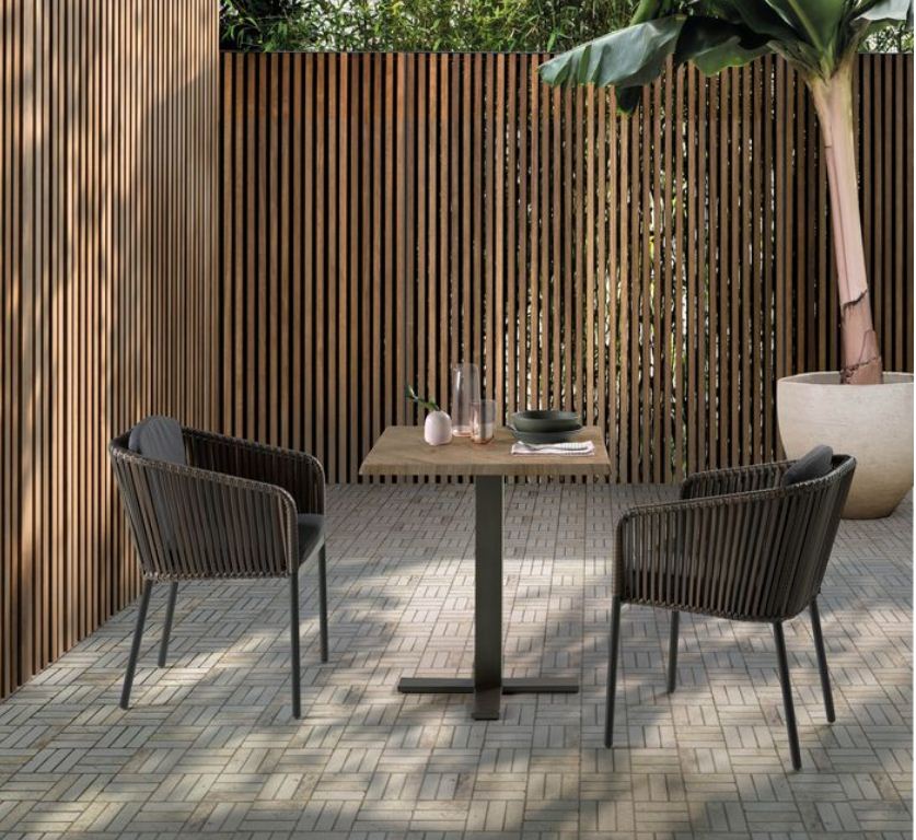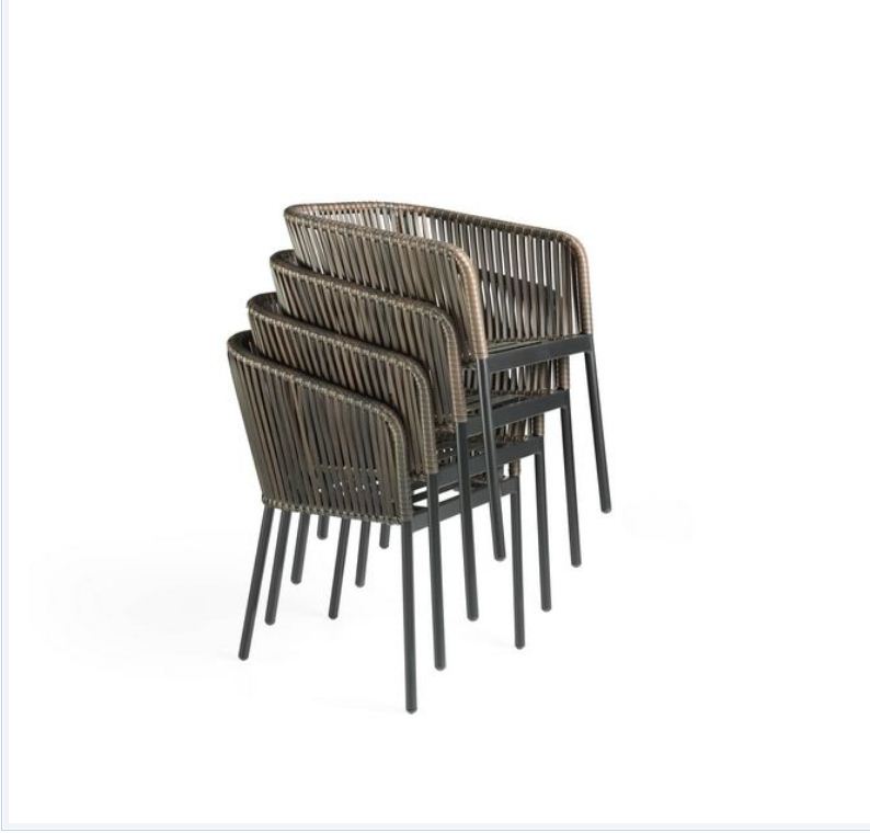 Sillón apilable de estructura de aluminio de 1,5mm y tejido en rattan sintético plano color chocolate, esta fibra de alta calidad no procede de resinas recicladas, por lo que son indeformables y muy resistentes al sol y a la humedad así pues, este mueble puede permanecer en el exterior sin necesidad de protección o mantenimiento alguno, aunque para alargar la vida útil de su mueble de exterior, aconsejamos tapar con una funda opaca e impermeable si no se van a utilizar en periodos prolongados de tiempo. La tela de la tapicería es en poliéster 100% color negro, este textil sintético fabricado de polímeros tiene la ventaja de que no encoge ni se deforma, tiene una gran durabilidad, aguanta bien la humedad, seca rápido y no presenta casi arrugas, el grosor de las tapicerías es de 5 cm el asiento y 3 cm el respaldo y son desenfundables. Protección en las patas con tacos de plástico. Al ser apilable facilita el ahorro de espacio en su almacenamiento y recogida. Este sillón de estilo contemporáneo puede ser ideal para zonas urbanas, porticadas, terrazas o en tu jardín.
