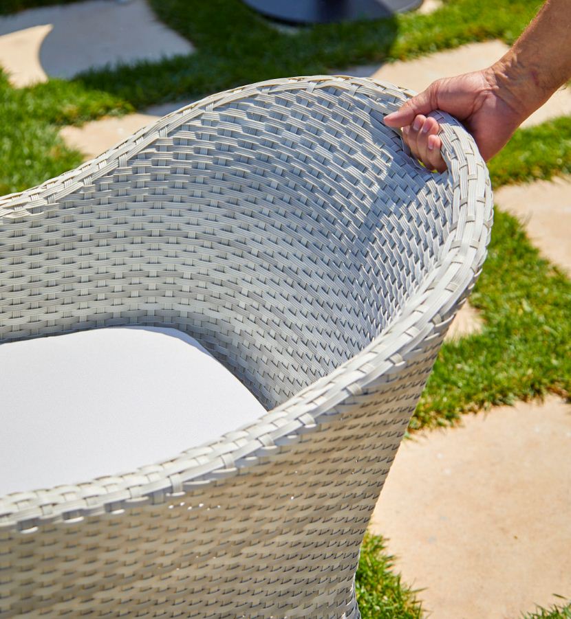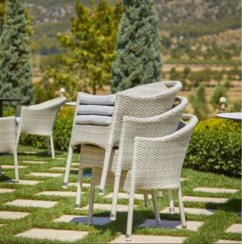 Sillón apilable de aluminio y uniones de aluminio reforzado para obtener un mueble resistente y de alta durabilidad, el tejido es de rattan sintético en color vintage IV, esta fibra de alta calidad no procede de resinas recicladas, por lo que son indeformables y muy resistentes al sol y a la humedad así pues, este mueble puede permanecer en el exterior sin necesidad de protección o mantenimiento alguno, aunque para alargar la vida útil de su mueble de exterior aconsejamos tapar con una funda opaca e impermeable si no se van a utilizar en periodos prolongados de tiempo. Protección en las patas con casquillos de aluminio y tacos de plástico. Tapicería Olefin 100% color único, con tratamiento repelente a líquidos y manchas, anti-moho, antibacteriano, filtro rayos ultravioleta, con solidez del color a la luz 7/8, a la fricción y al agua clorada de las piscinas. El espesor de la tapicería es de 5 cm, siendo esta completamente desenfundable para facilitar la limpieza. Tejido OECO-TEX, respetuoso con el medio ambiente. Al ser apilable facilita el ahorro de espacio en su almacenamiento y recogida. Estos cómodos sillones te invitaran a pasar momentos muy agradables.