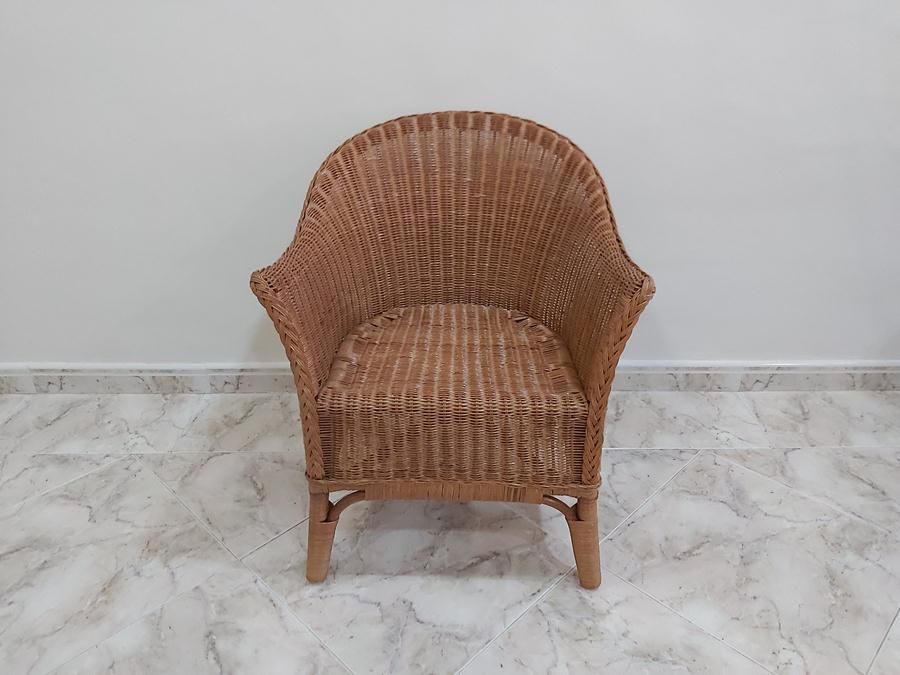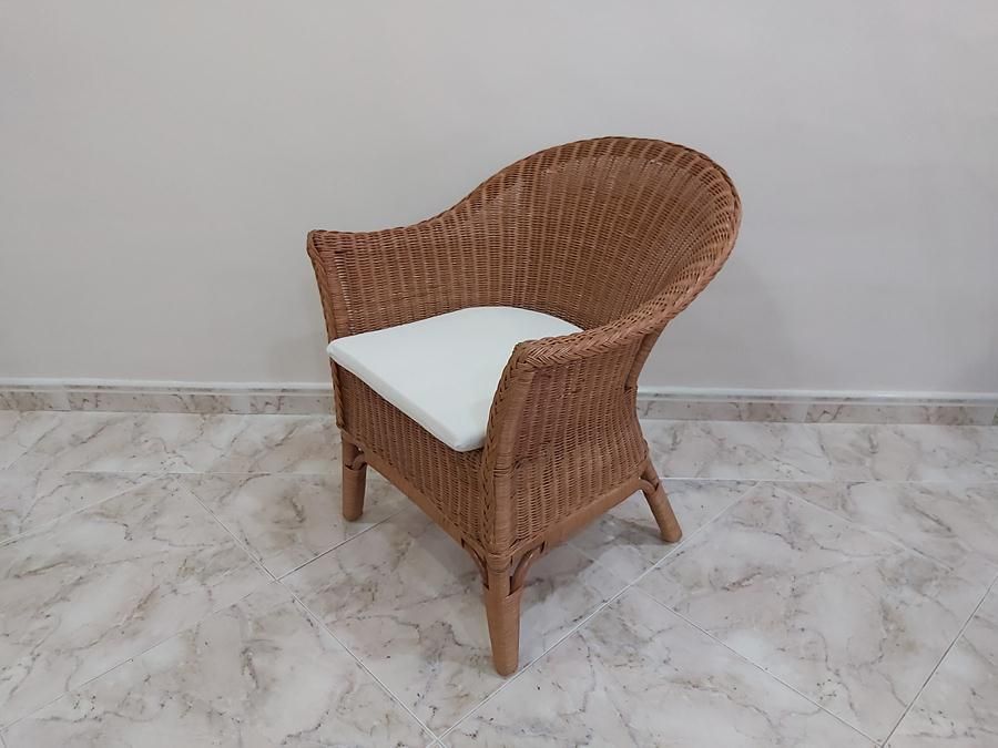 SILLON ELEGANTE DE ESTRUCTURA DE BAMBU TEJIDO DE RATTAN CON FALDON.