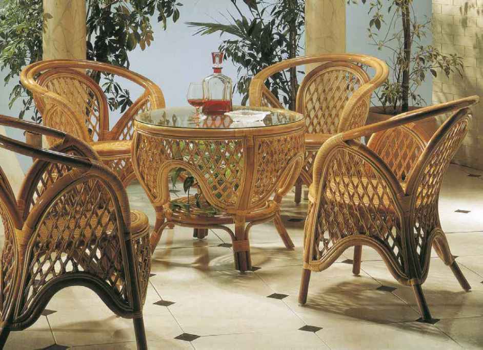 MESA DE CAÑA BAMBU CON TAPA DE CRISTAL.