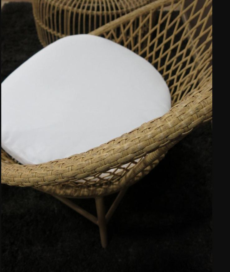 MIRANDA es un cómodo y elegante sillón outdoor con estructura de aluminio y tejido en rattan sintético color natural. Inluye tapicería en color blanco. Ideal para terrazas, patios, balcones…