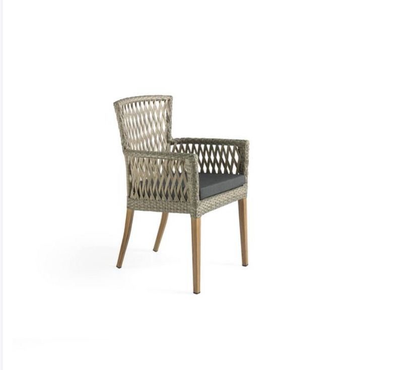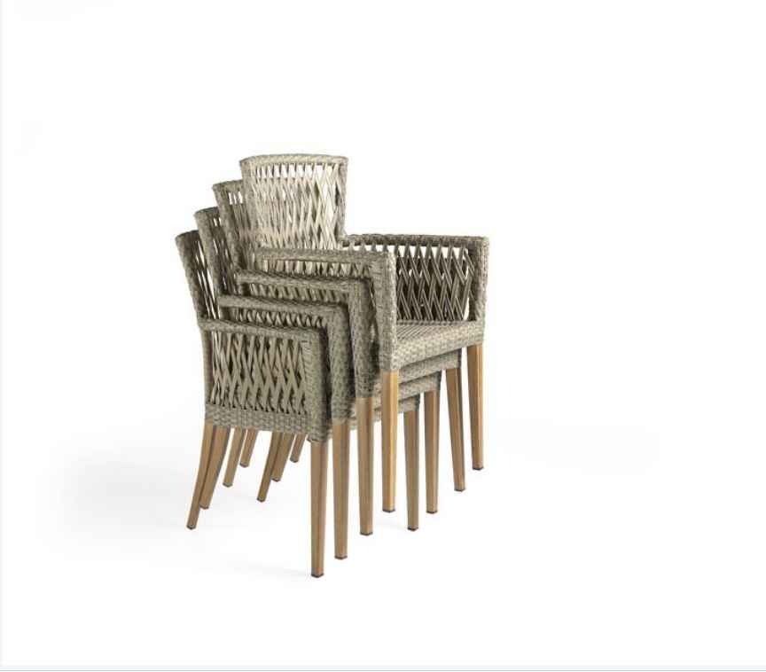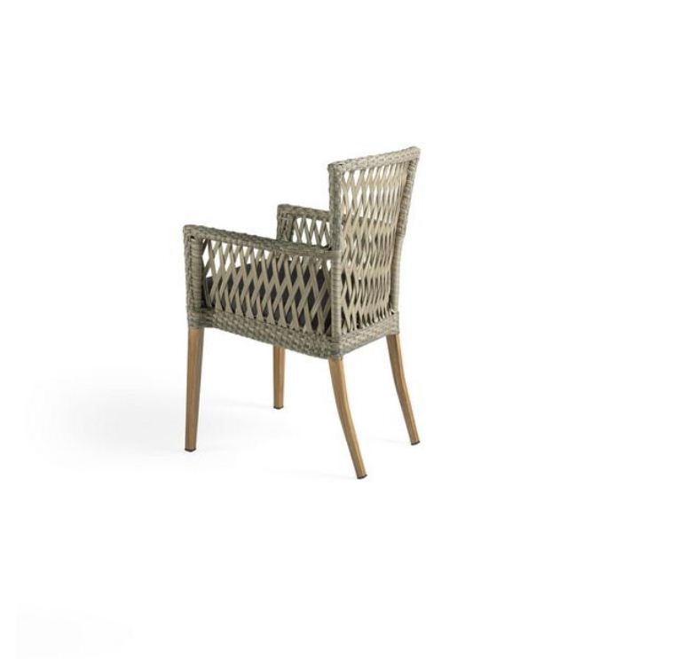 Sillón apilable de estructura de aluminio de 1,5mm y tejido en rattan sintético plano color cafe-bambu, esta fibra de alta calidad no procede de resinas recicladas, por lo que son indeformables y muy resistentes al sol y a la humedad así pues, este mueble puede permanecer en el exterior sin necesidad de protección o mantenimiento alguno, aunque para alargar la vida útil de su mueble de exterior, aconsejamos tapar con una funda opaca e impermeable si no se van a utilizar en periodos prolongados de tiempo. La tela de la tapicería es en poliéster 100% color negro, este textil sintético fabricado de polímeros tiene la ventaja de que no encoge ni se deforma, tiene una gran durabilidad, aguanta bien la humedad, seca rápido y no presenta casi arrugas, el grosor de la tapicería es de 5 cm y es desenfundable. Protección en las patas con tacos de plástico. Al ser apilable facilita el ahorro de espacio en su almacenamiento y recogida. Elegante y muy versátil que le dará un toque romántico a tu terraza.