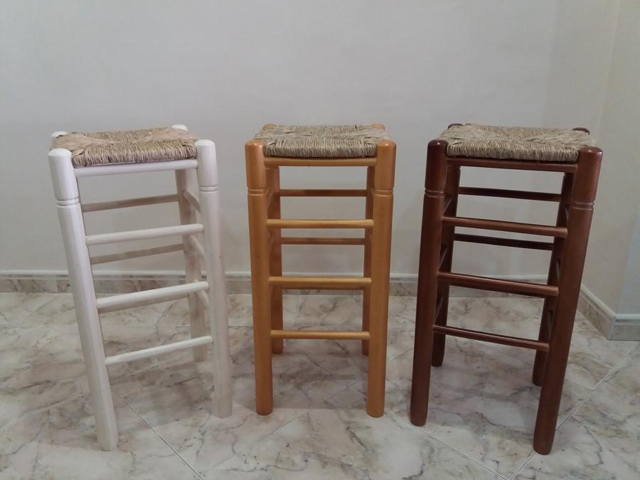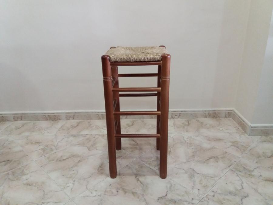 TABURETE DE MADERA ALTO CON ASIENTO DE ENEA.
